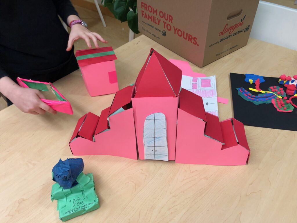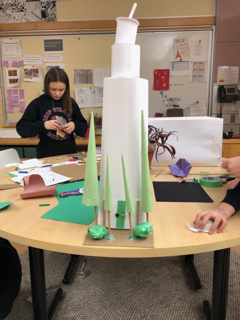 - Begin building. Ask students to try as hard as they can to stay true to the concepts and scale they created in their drawings. Ideally they are building in teams so that the storage space needed is limited. Buildings should be to scale if possible, but should be small. Remind students that they will need to decide who takes home what part at the end of the term.)